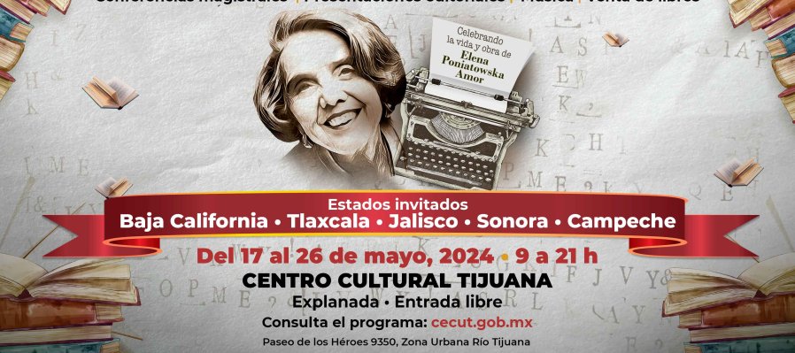 16 MAYO 2024.XXXIX Feria del Libro de Tijuana 2024 XXXIX Feria del Libro de Tijuana se llevará a cabo del 17 al 26 de Mayo de 9:00 am a 9:00 pm en la Explanada de CECUT. Presentaciones editoriales, Conferencias magistrales, venta de libros, música. Estados invitados: Baja California, Tlaxcala, Jalisco, Sonora, Campeche. Entrada Libre.