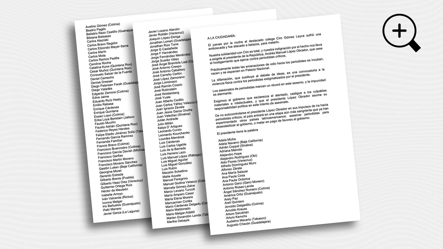 Entre los periodistas que firmaron esta carta se encuentran: David Aponte, Alejandro Hope, Adela Micha, Ana Paula Ordorica, Adriana Malvido, Alfonso Zárate, entre otros.