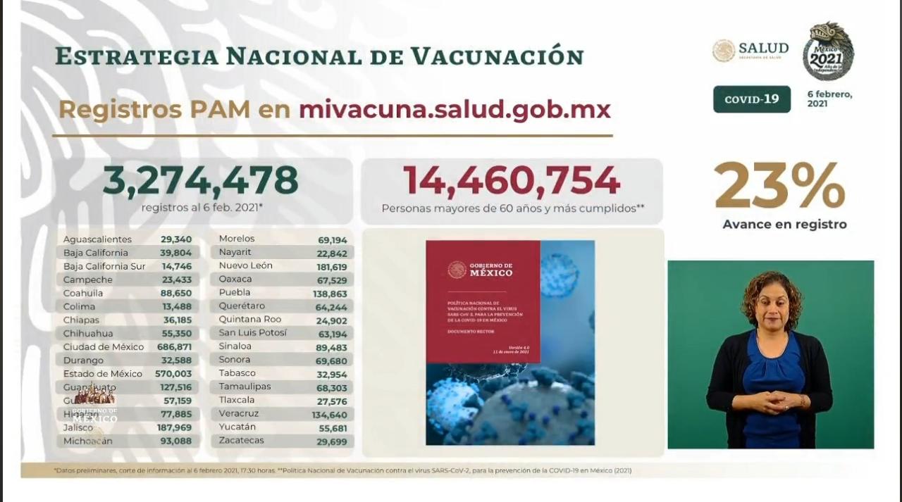 Son 3 millones 274 mil 478 adultos mayores que ya realizaron con éxito su registro en el sitio web que el Gobierno de México abrió para organizar la inoculación contra COVID-19 para personas de 60 años en adelante.