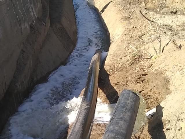 1.- Sobre el tubo pluvial ubicado debajo de la vialidad a Playas de Tijuana, se han realizado ya dos perforaciones desde el interior gracias a las cuales se está realizando la salida de aproximadamente 15 litros por segundo (lps), entre cada abertura. De forma paralela se está haciendo una rampa en el área para poder hacer una tercera perforación que permita la salida de un mayor flujo de agua.