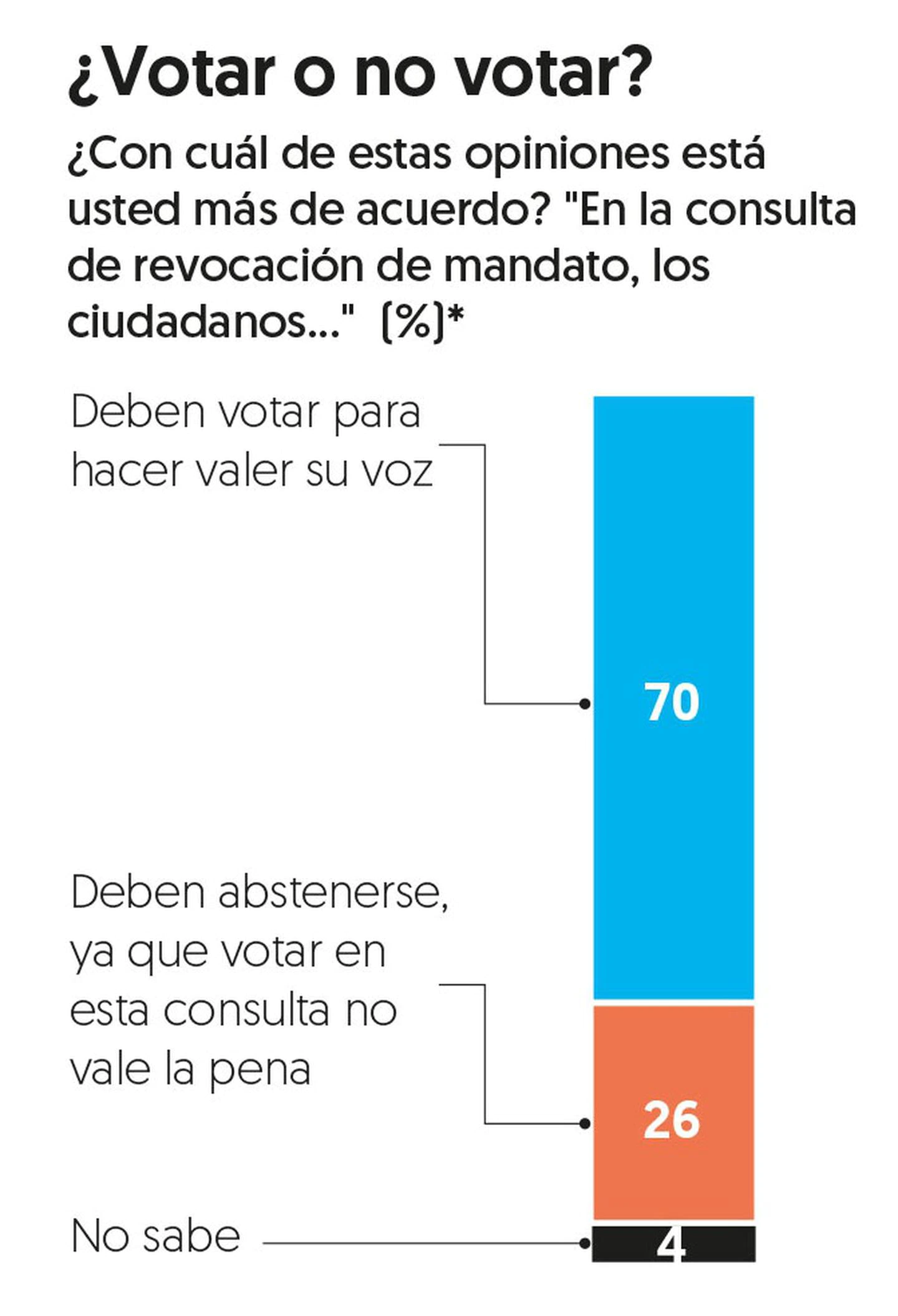 De acuerdo con el estudio, 70 por ciento opina que la ciudadanía debería votar en la consulta, mientras que 26 por ciento cree que es mejor abstenerse.