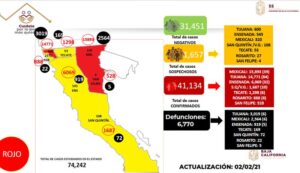 TIJUANA,BAJA CALIFORNIA,03 febrero 2021/- En Baja California suman 6,770 defunciones debido al coronavirus, 41,134 casos confirmados acumulados y van 31,125 pacientes recuperados, actualizó el secretario de Salud en el Estado, Alonso Pérez Rico.