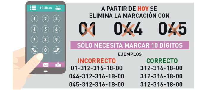 n un comunicado, explicó que en el caso de números móviles, se eliminan los prefijos 044 y 045, mientras que en los de larga distancia se elimina el 01.