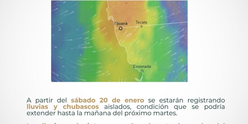 A partir del sábado 20 de enero se estarán registrando lluvias y chubascos aislados, condición que se podría extender hasta la mañana del próximo martes.