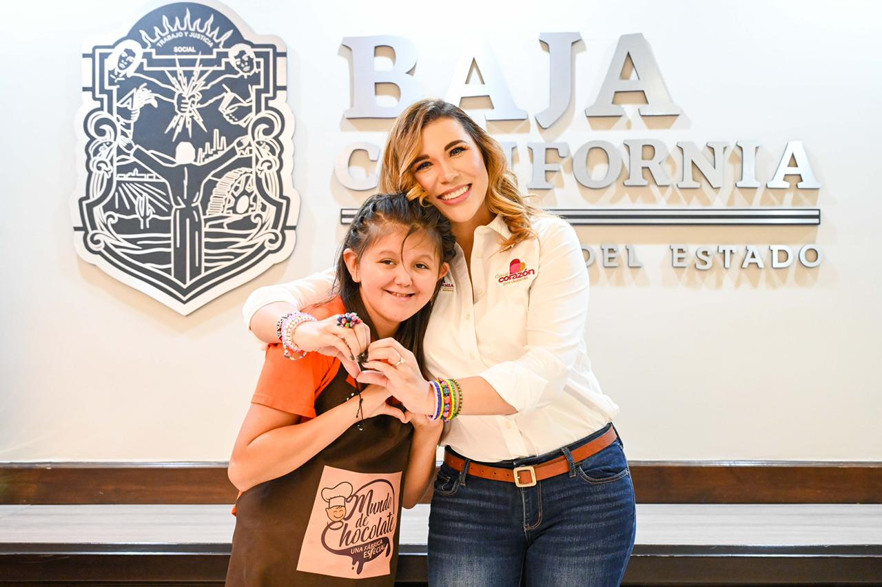 En ese contexto, la mandataria recibió en sus oficinas de la capital del Estado al equipo de la empresa “Mundo de Chocolate, una fábrica especial”, misma que se dedica a la fabricación de tabletas de chocolate, y es integrada por un grupo de jóvenes con Síndrome de Down y otras discapacidades, que han trabajado de manera continua desde el mes de octubre de 2021 en la ciudad de Mexicali. Durante la reunión, la Jefa del Poder Ejecutivo del Estado resaltó la tenacidad y el valor que las y los jóvenes con discapacidad le imprimen a su trabajo, mismo que fue constituido como un proyecto derivado de las actividades del Club de Activación Física Pro Down, asociación civil que cuenta con una presencia de 11 años en el municipio mexicalense.