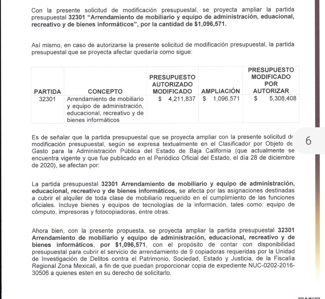 El Congreso de Baja California autorizó a la Fiscalía utilizar recursos propios para la ampliación presupuestal solicitada por más de 1 millón de pesos, por lo que no hubo impedimento de legisladores, salvo del diputado morenista, Sergio Moctezuma, quien criticó el uso del recurso de esa cantidad para sacar copias y escanear documentos de CAMAC.