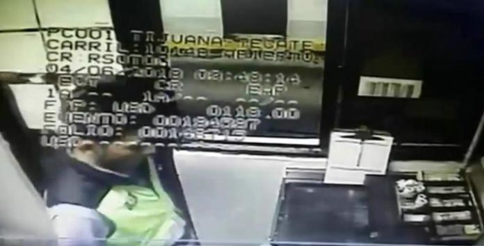 En un video que circula en internet se puede observar cuando un vehículo de cuatro puertas, llega a la caseta, descienden de la unidad el conductor y un pasajero armados, intimidan al cajero quien solo les señala el efectivo. Los delincuentes, primero toman algunos billetes para después llevarse en monto total de la caja registradora.