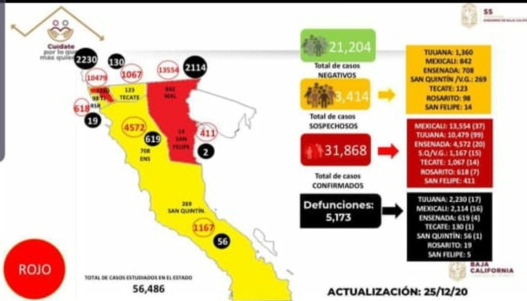 Los informes sanitarios de Baja California documentaron un total de 38 fallecimientos y 172 nuevos contagios por covid 19 en las últimas horas.