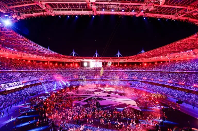 - 15:40 Tom Cruise aparece en el Estadio caído del cielo y despide entre los atletas en motocicleta.