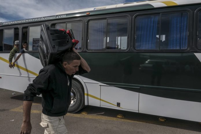 «¡Ya vámonos, ya vámonos!», gritan desesperados los tripulantes del modesto autobús número 22, el último del convoy que ha partido el miércoles por la mañana. Hasta hace dos días, la ruta del chófer Guillermo Lara surcaba las calles de Ciudad Obregón, al sur del desértico Estado de Sonora. Esta vez le toca ser las manos detrás del volante de un éxodo que avanza sobre ruedas por el medio del desierto, en un viaje temerario y maratónico hacia el norte. Eso dice el letrero que cuelga del parabrisas y nunca había sido más elocuente. El itinerario de hoy: de Navojoa (Sonora) a Tijuana (Baja California). Serán poco más de 23 horas de camino. «El café me da sueño, me gusta más trabajar así, sin tomar nada», explica Lara entre risas.Resultado de imagen para CENTROAMERICANOS QUE LLEGAN A TIJUANA