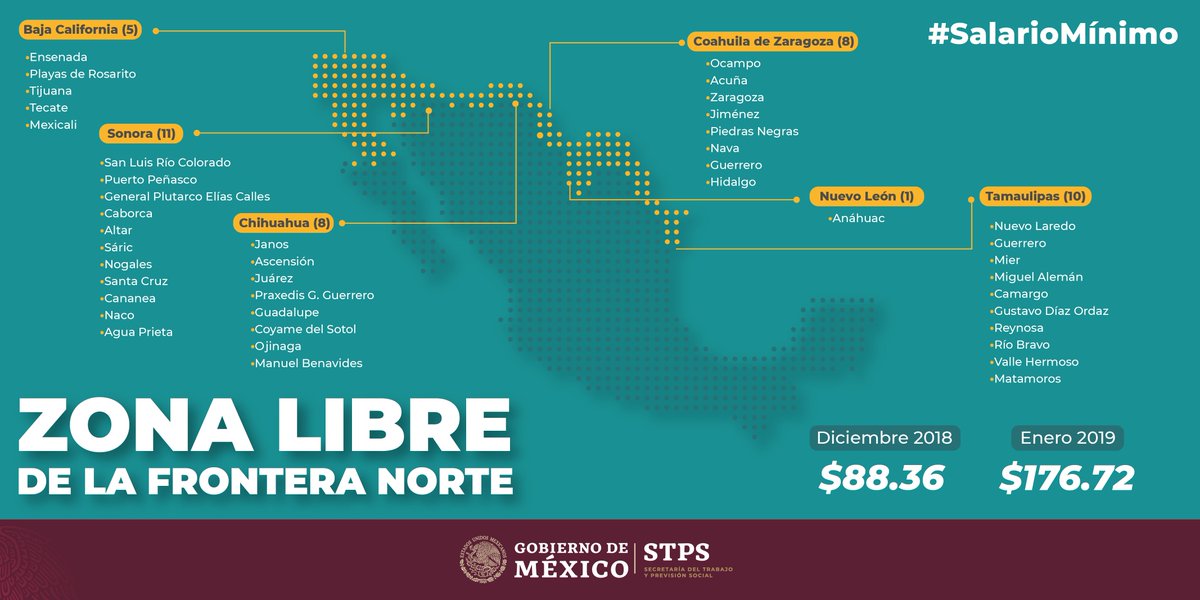 La reducción del Impuesto al Valor Agregado (IVA) a 8% y del Impuesto sobre la Renta (ISR) a 20%, el aumento al doble del salario mínimo (176.72 pesos diarios) y la homologación de los precios de los combustibles con Estados Unidos en 3,180 kilómetros de la franja fronteriza (el presidente Andrés Manuel López Obrador firmó el sábado pasado el Decreto de Estímulos Fiscales de la Región Frontera Norte), complementarán la fortaleza que muestra el estado.