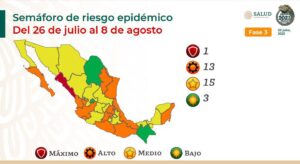 La Secretaría de Salud informó este viernes que solo tres estados del país estarán en semáforo por COVID-19 en color verde; además un estado regresó al color rojo.