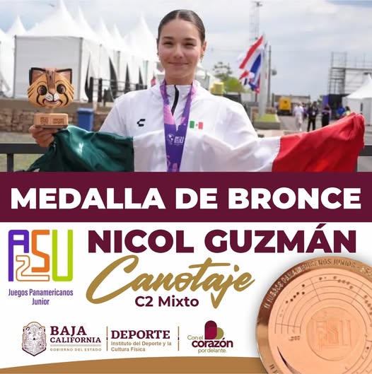 ¡Orgullo bajacaliforniano en Asunción 2025! Nicol Guzmán y José Gil lograron la medalla de bronce en C-2 500 m mixto, cerrando con broche de oro su participación en los II Juegos Panamericanos Junior. Con su esfuerzo y talento, la dupla mexicana vuelve a poner el canotaje nacional en lo más alto.