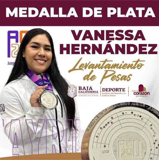¡Felicidades a la bajacaliforniana Vanessa Hernández! La joven pesista brilló en los Juegos Panamericanos Junior Asunción 2025, conquistando la medalla de plata en levantamiento de pesas y poniendo en alto el nombre de México y Baja California.