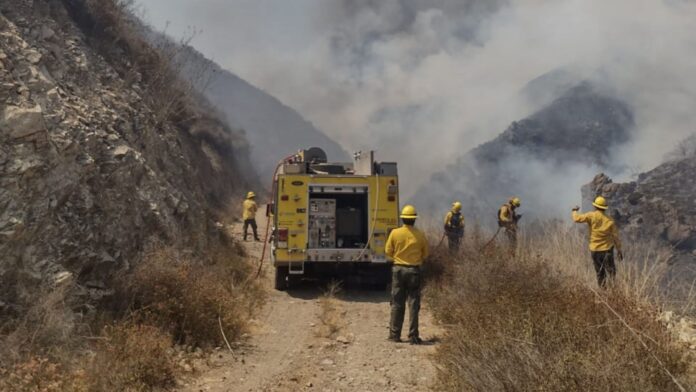 Para apoyar el combate al fueo se logró traer agua de la presa Emilio López Zamora y se activó un helibalde para apoyar y arrojar agua al incendio.