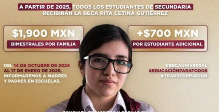 La beca Rita Cetina beneficiará a 5.6 millones de estudiantes de secundaria en su primera etapa, y los pagos comenzarán en enero de 2025.