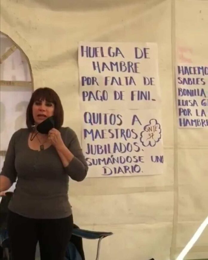 La maestra Guadalupe Sánchez dio a conocer que cada día se sumará otro maestro jubilado a esta protesta hasta que les pague el gobernador Jaime Bonilla.