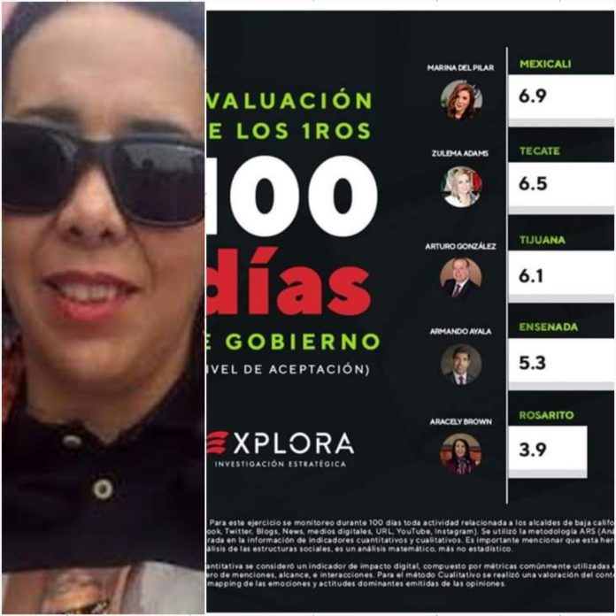 De acuerdo a EXPLORA, Araceli Brown Figaredo, con base en la opinión de sus gobernados consultados, solo alcanzó una calificación de 3.9, por  abajo del presidente municipal de Ensenada, Armando Ayala, quien al igual que la edil rosaritense fue reprobado por sus conciudadanos al lograr una calificación de 5.3.