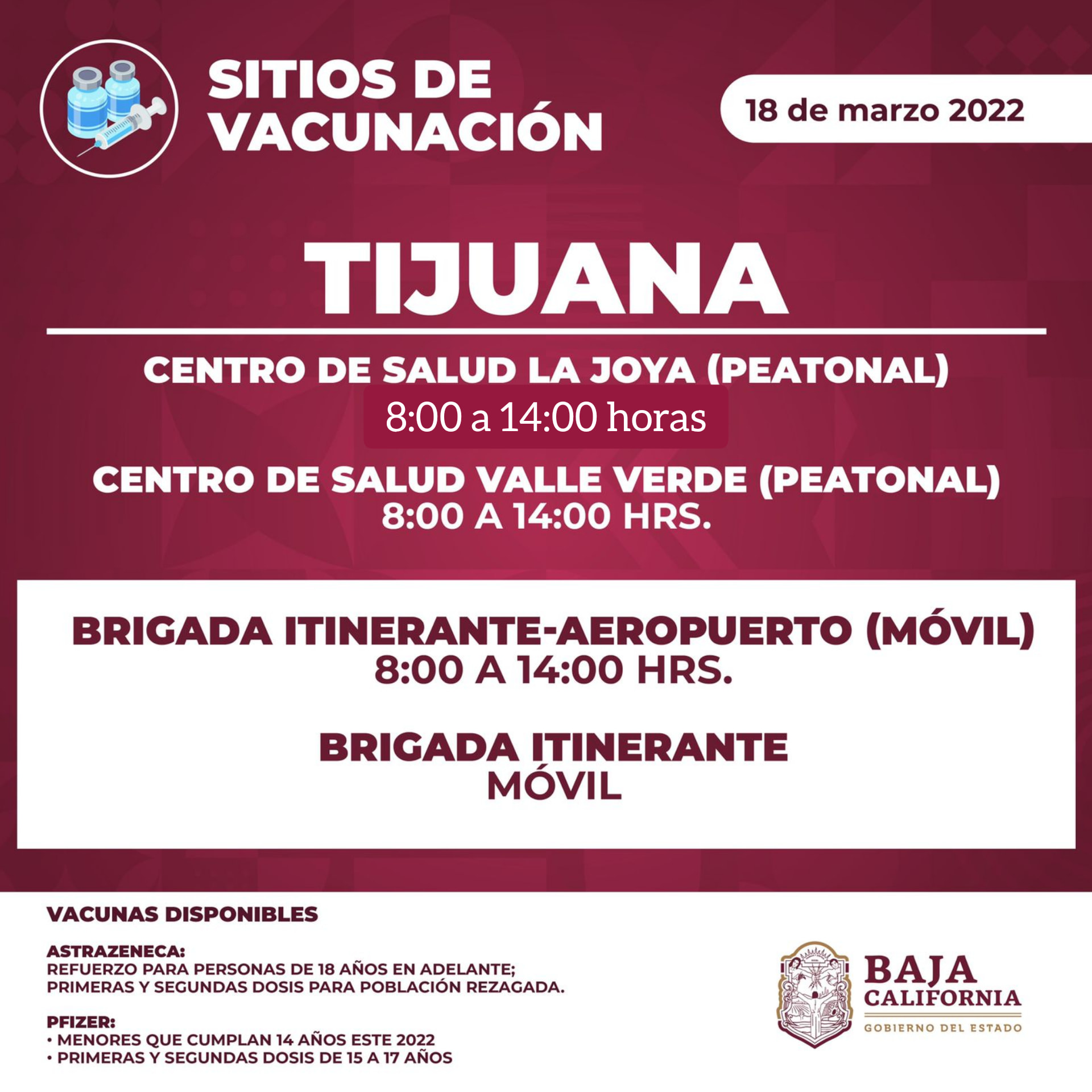 TIJUANA, BAJA CALIFORNIA, 27 d emarzo 2022 SITIOS DE VACUNACIÓN LUNES 28 DE MARZO : ...