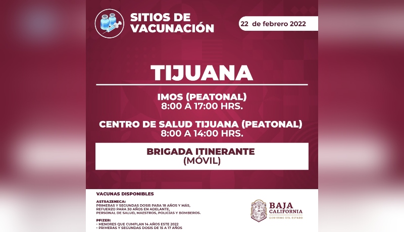 CONTRA EL COVID 19: ¿Dónde Vacunarse en Mexicali ,Tijuana y Ensenada. el miércoles 23 de febrero 2022.