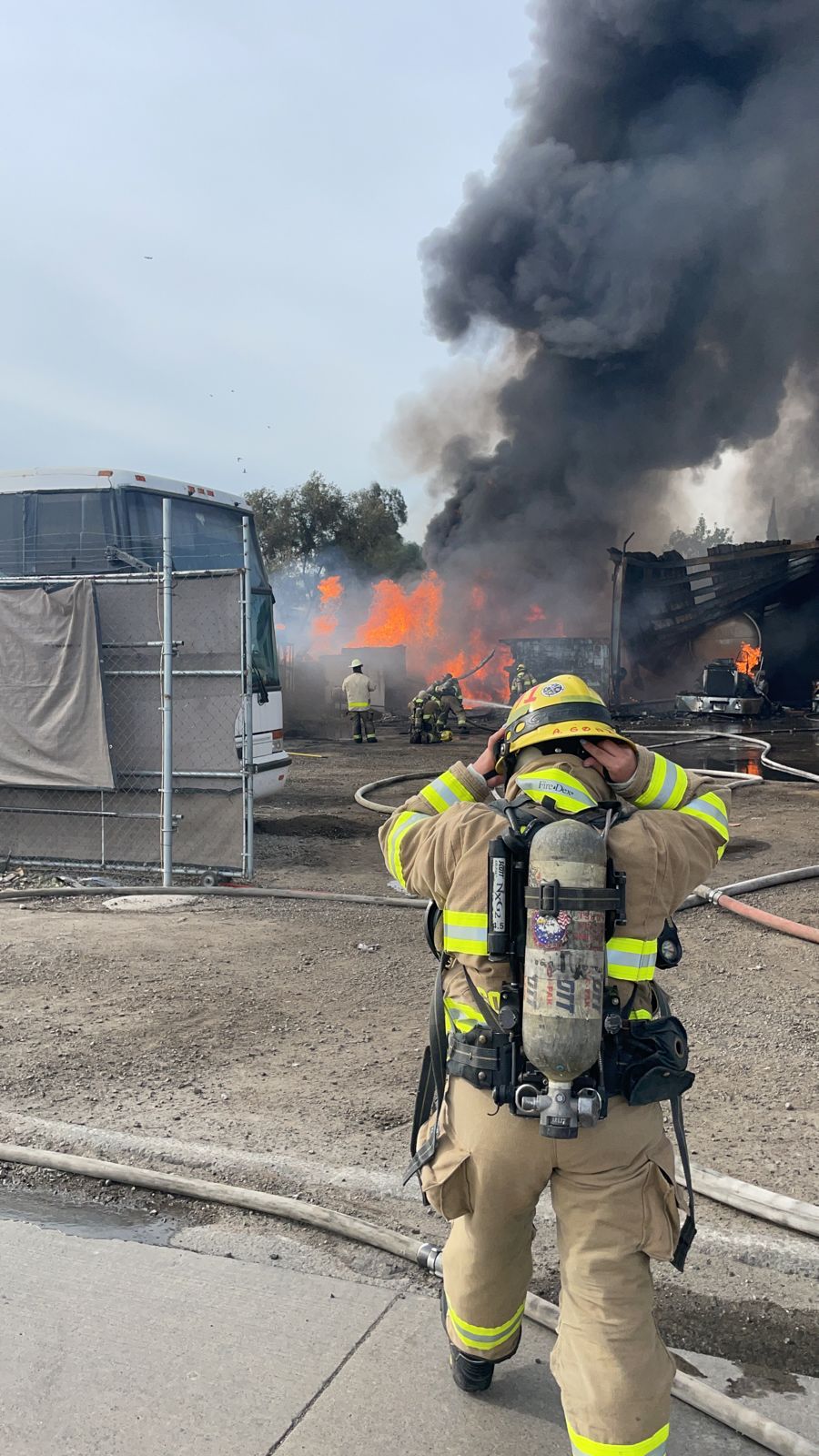 TIJUANA,BAJA CALIFORNIA ,16 de enero 2022. Se reporte de Incendio en taller,aparentemente de transporte de ...