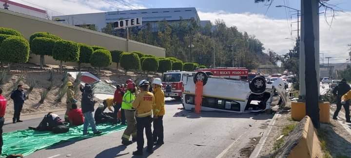 SE ACCIDENTA TAXI DE RUTA EN BOULEVARD ROSAS MAGALLON.Por lo menos 7 heridos