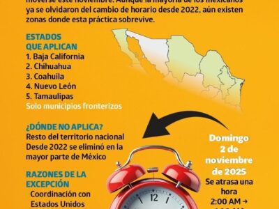 Dónde y en que estados cambian la hora el domingo 02 de noviembre 2025
