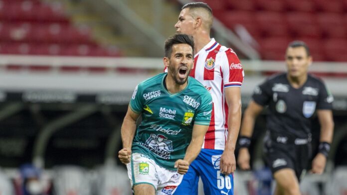 Luis Montes disputa una pelota en el borde del área de Chivas. Parece que el creativo de León cometió falta de tarjeta sobre Alexis Vega. El árbitro no la muestra. ¿Se revisará la jugada?