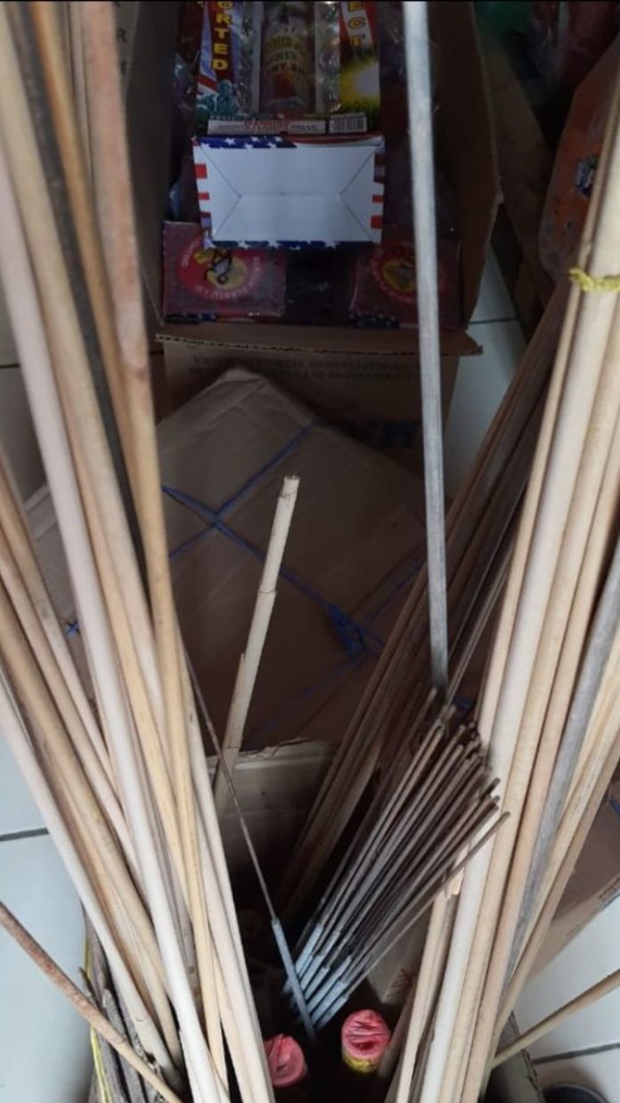 Tijuana, Baja California, a 25 de junio de 2020.- El XXIII Ayuntamiento de Tijuana clausuró un local comercial en la colonia Granjas Familiares de la Delegación Otay Centenario, en donde vendían artículos de procedencia irregular, logrando decomisar más de 78 kilos de pirotecnia y varias cajas que contenían bebidas alcohólicas.