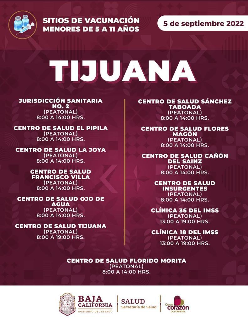 Centro de Salud Tecate, ubicado en calle José Espinoza s/n, col. Fundadores, Tecate, en modalidad peatonal, horario de 8:00 a 14:00 horas.