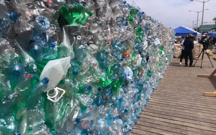 Tijuana,Baja California,DOMINGO 07 JULIO 2019/.- Con 15 metros de longitud por dos de ancho fue instalado la mañana del domingo un muro, elaborado con residuos de plásticos, en el malecón de Playas de Tijuana.