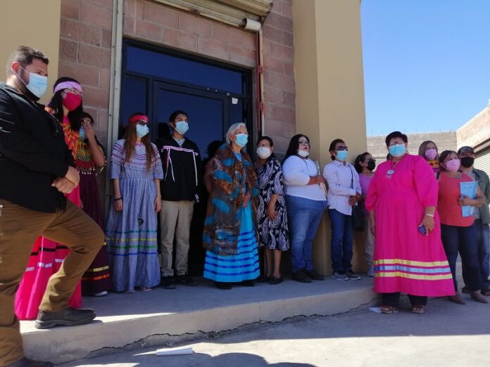 MEXICALI,BAJA CALIFORNIA,29 mayo 2021/– Miembros de la etnia Cucapá en Mexicali y San Luis Río Colorado, Sonora, acudieron la mañana de este sábado a las instalaciones del Consejo Distrital 01 para expresar su rechazo a la candidatura de Rigoberto Campos González con el Partido Encuentro Solidario (PES) y demostrar que no forma parte de la comunidad.