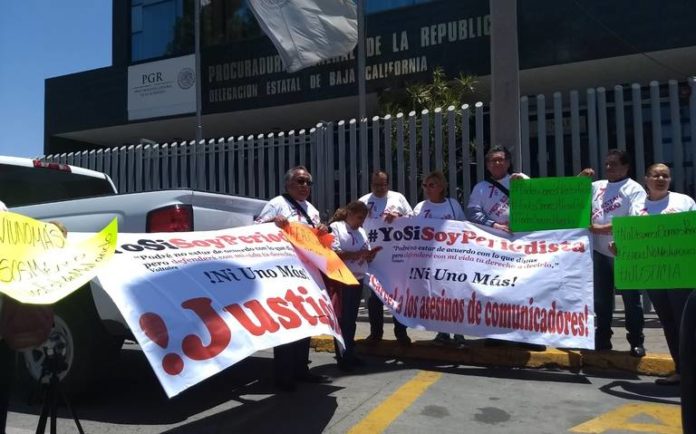 En Tijuana, grupación Artículo 19, en donde exige justicia para los reporteros asesinados en el país, pero se pide al gobierno que ya paren la masacre con los informadores,que cada día se ven expuestos a situaciones difíciles para su trabajo.