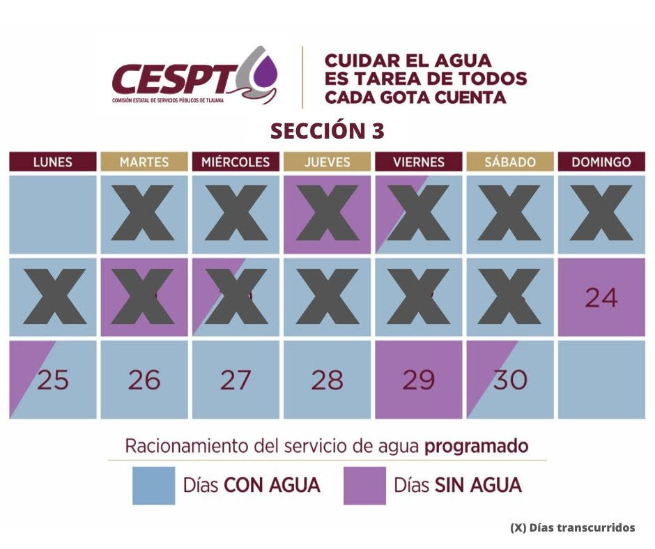 TIJUANA, B. C., 22 de noviembre de 2019. – Siguiendo con el Programa de Racionamiento de Agua Potable, comunicamos que este fin de semana serán las secciones 2 y 3 (sábado y domingo respectivamente) a las que corresponda aplicarse los cierres en las colonias establecidas desde un inicio y que más adelante se detallan.