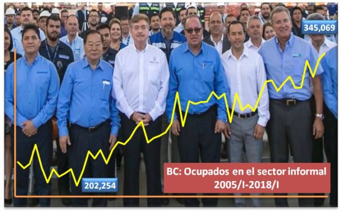Baja California continúa imponiendo récord de ocupados en el sector informal y en el primer trimestre del año la cifra alcanzó los 345 mil trabajadores en esas condiciones, de acuerdo con la Encuesta Nacional de Ocupación y Empleo que realiza el Instituto Nacional de Estadística y Geografía.