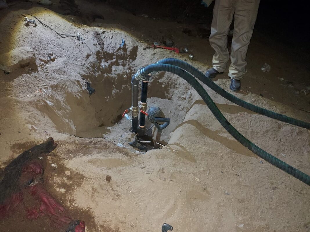 En el mismo camino vecinal, otra unidad patrulla localizó una segunda pipa marca International de color blanco, que estaba cargada con combustible; en ese momento, los policías municipales observaron que había diesel derramado de una válvula que al parecer era utilizada como toma clandestina, por lo que informaron a la central de radio.