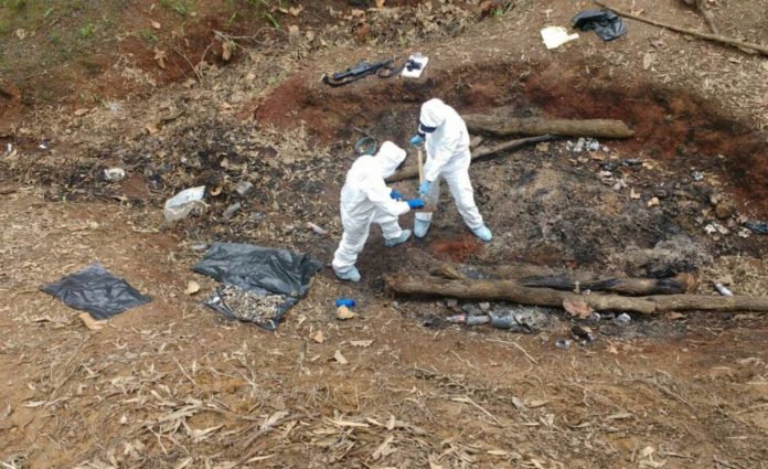 En uno de los campamentos localizaron un punto donde había leña y restos óseos incinerados. Se sabe por los testimonios de los supervivientes, que el cártel Jalisco Nueva Generación se deshacía con fuego de quienes desobedecían o no servían para los trabajos del grupo criminal. ESPECIAL