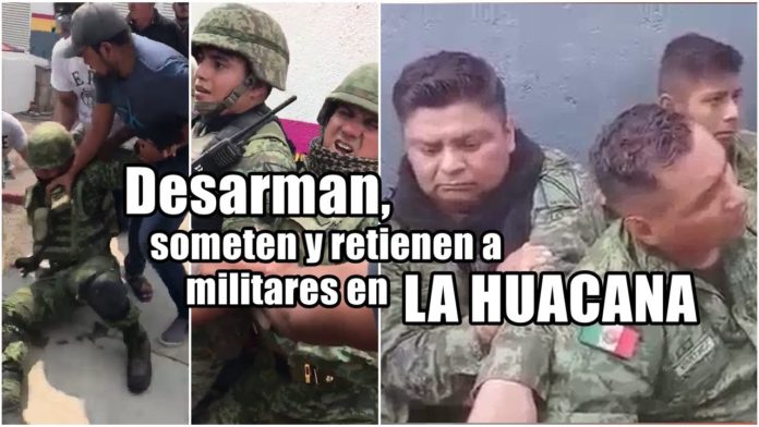 DESARMAN Y RETIENEN A MILITARES EN LA HUACANA,MICHOACAN