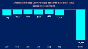 En ese sentido, de abril a septiembre, último reporte del IMSS, se dieron de baja 3 mil 994 negocios en el estado, reflejando la crítica situación que atraviesan los bajacalifornianos quienes no han visto un gobierno solidario con la situación actual, al contrario, tienen una autoridad con una política recaudatoria.