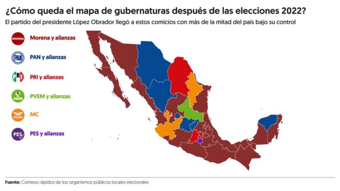 Si hay un claro ganador de las elecciones a gobernador es Morena. El partido fundado por el presidente Andrés Manuel López Obrador llegaba este domingo sin gobernar ninguna de las entidades en juego y terminará controlando cuatro de ellas, de acuerdo con las proyecciones de los conteos rápidos.