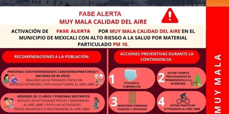 Mexicali, Baja California,22 octubre 2025.-Por la presencia de pequeñas partículas suspendidas en el aire que representan un riesgo a la salud de la población, en Mexicali se aplicó la alerta ambiental.