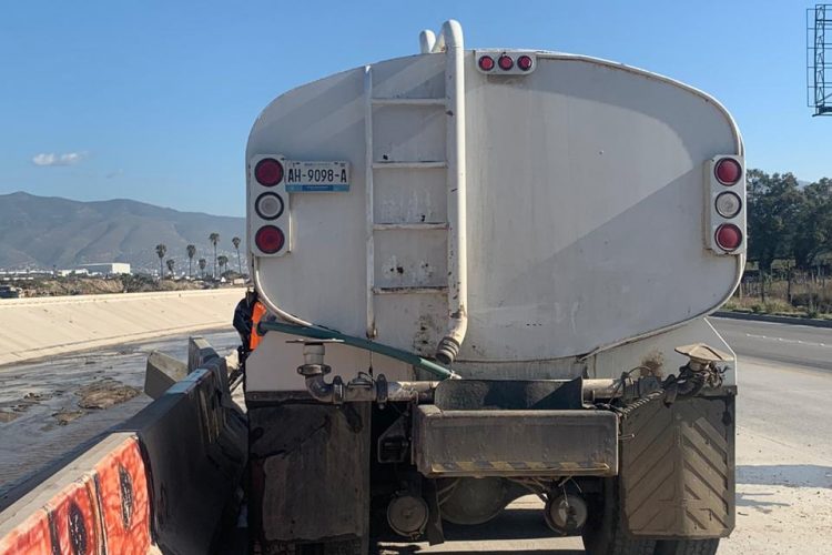 Autoridades municipales informaron que estas aguas contaminadas provienen de los deshechos de una construcción en la colonia Calete y el camión pertenece a la empresa Urbanizado y Pavimentación de Baja California.