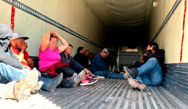 El incidente ocurrió aproximadamente a las 9.00 horas de la mañana del pasado miércoles, cuando llegó un tractocamión con remolque hasta el puesto de control durante la inspección primaria, un oficial canino del equipo de detección de la Border Patrol, alertó sobre al sospechoso en el área de carga por lo que se pasó a la segunda revisión y se localizó a 16 hombres, 4 mujeres y 1 niño no acompañado.