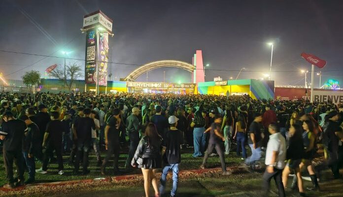 Mexicali,Baja California, domingo 05 DE OCTUBRE 2025.-. El sobre cupo de las instalaciones del FEX, la falta de medidas de seguridad y la desorganización de los responsables, dejo un saldo de 20 personas, incluidos menores, detenidas tras los disturbios registrados durante el concierto de Víctor Mendivil en la Isla de las Estrellas de las Fiestas del Sol.