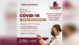 La Jurisdicción de Servicios de la Salud de Tijuana comunicó los dos puntos de vacunación del lunes 29 de noviembre para continuar con la aplicación de vacuna para adolescentes de 15 a 17 años.