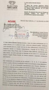 En la denuncia, se acusa a la síndica María del Carmen Espinoza Ochoa de abuso de autoridad y hostigamiento laboral durante esta administración municipal, conducta que escaló hasta dictar la suspensión de funciones de Ana Leticia Salcedo Quiróz, de su puesto como Oficial Mayor de Tijuana.