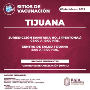 SITIOS PARA VACUNARSE EL MARTES 08 FEBRERO 2022 EN TIJUANA.Contra el Covid 19