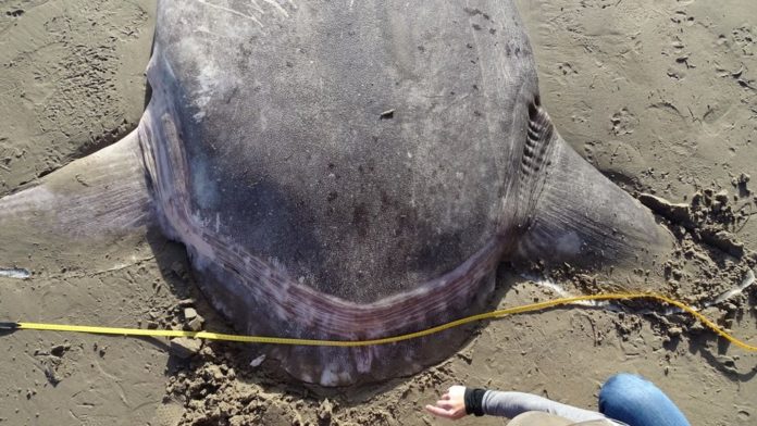El pez de siete pies (1.82 metros) apareció muerto el 19 de febrero en la Reserva Oil Oil Point de Santa Barbara, al sur de California, y en un principio, los investigadores creyeron que se trataba de otra especie similar al pez sol.