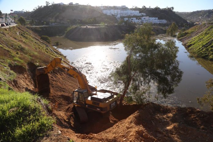 Se explicó que se sigue trabajando con el apoyo de la maquinaria pesada de la Comisión Estatal de Servicios Públicos de Tijuana (Cespt), en la remoción de basura, tierra, escombro y material que obstruye el paso del agua acumulada.