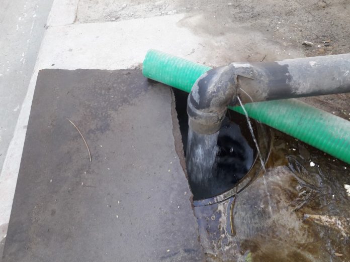 TIJUANA, BAJA CALIFORNIA,18 de diciembre 2018/ La emresa que construye en el conjunto habitacional de lujo, NewCity en Tijuana, encontraron un pozo de agua que los hizo suspender la obra, mientras arrojan una gran cantidad de agua al drenaje la manana de este martes 18 de diciembre 2018.